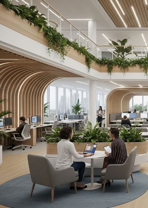 - Biophilic design reduces stress and boosts creativity.