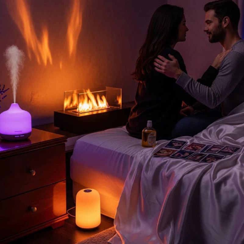 A neuroscience-backed system of light, scent, touch, and rituals — designed to reignite romance, deepen emotional safety, and restore physical intimacy.