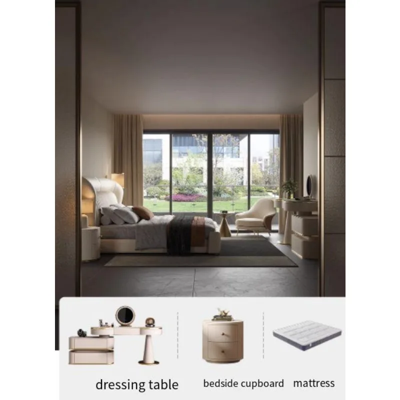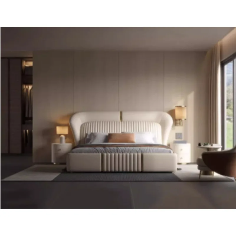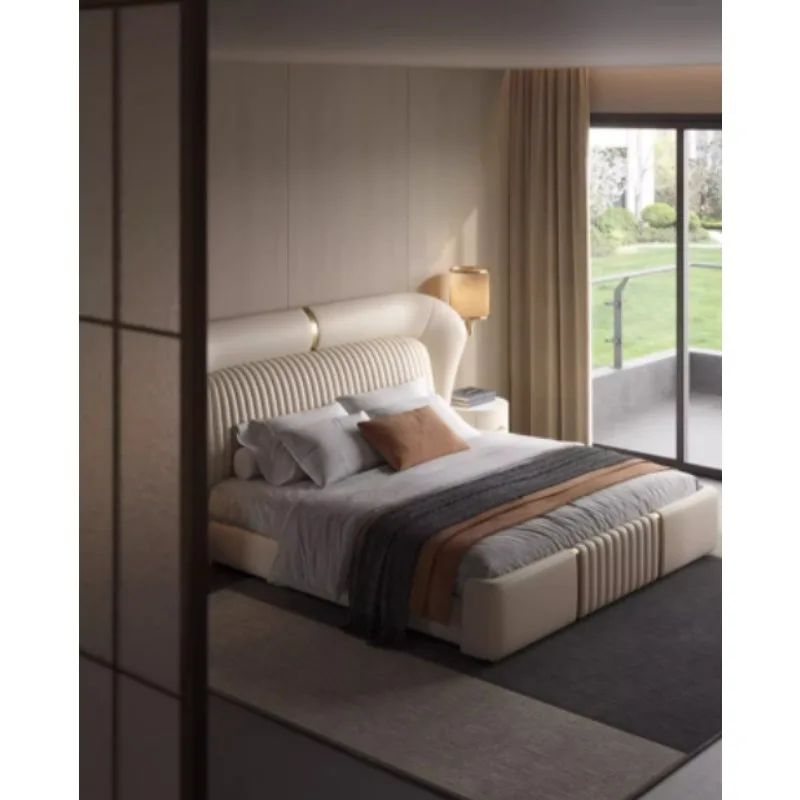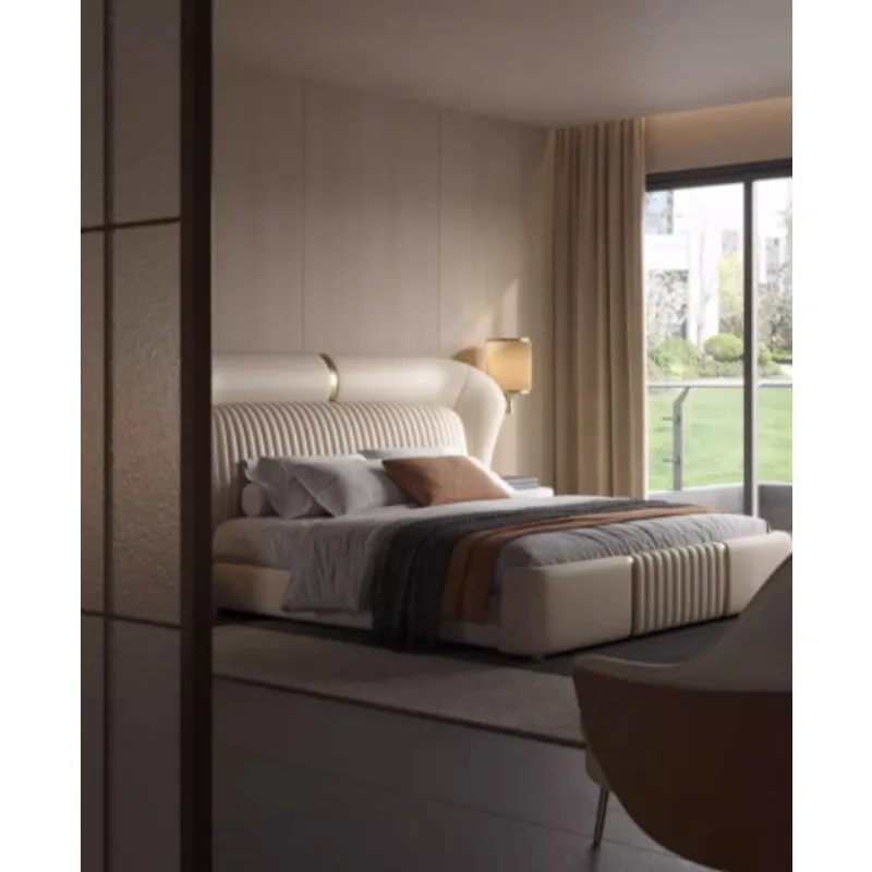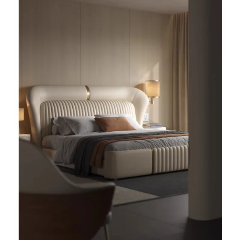 Gold 200× 180 Double Bed Storage Luxury Leather Big Hotel Bedroom Beds King Adults Modern White Camas De Dormitorio Furniture